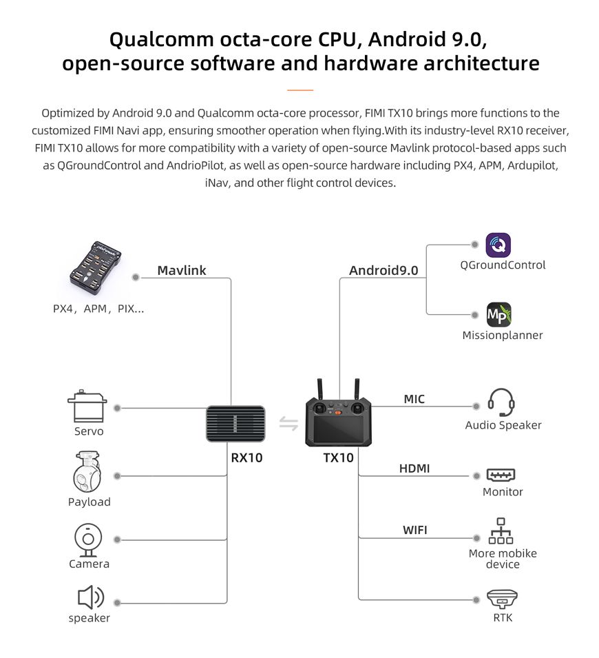 Il telecomando FIMI TX10A con schermo integrato offre un controllo avanzato e immediato per i droni FIMI X8 SE, X8 PRO e X8SE 2022 V2. Grazie al display incorporato, consente di monitorare in tempo reale le informazioni di volo senza bisogno di dispositivi esterni, migliorando l’esperienza operativa e la sicurezza. Progettato per garantire precisione e affidabilità, è lo strumento ideale per piloti che richiedono performance elevate e facilità d’uso durante le missioni aeree.
